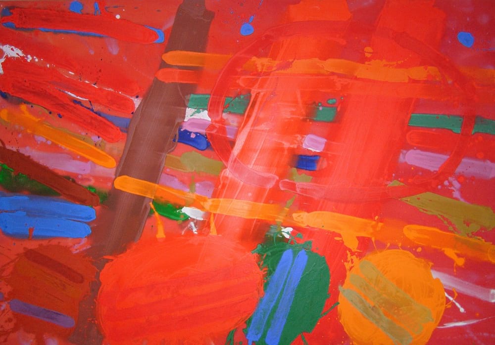 Originally called Action Painting, it began in post-war America – the aim being to record not only thought, but physical action on a surface, expressive of the individual who made the painting.