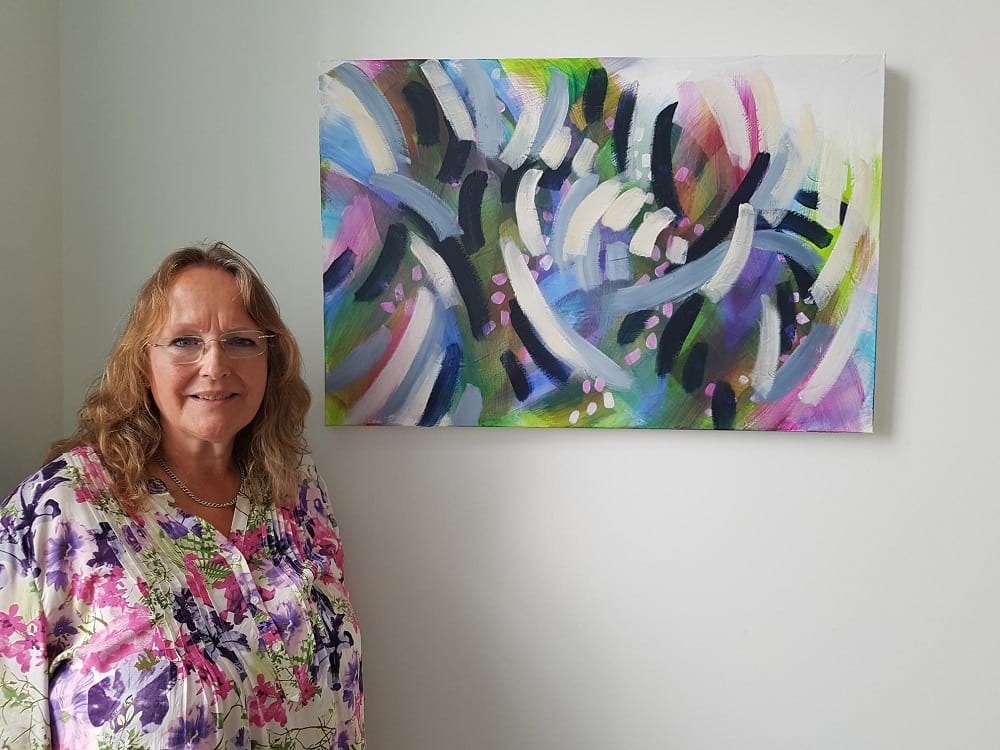 Laurel’s work has undergone a transition in the last year. Gestural marks and colour drive her painting. It is both intuitive and disciplined. Freedom from the convention of subject allows her to explore the elements that create abstract imagery. Her work is often large, complex and layered.