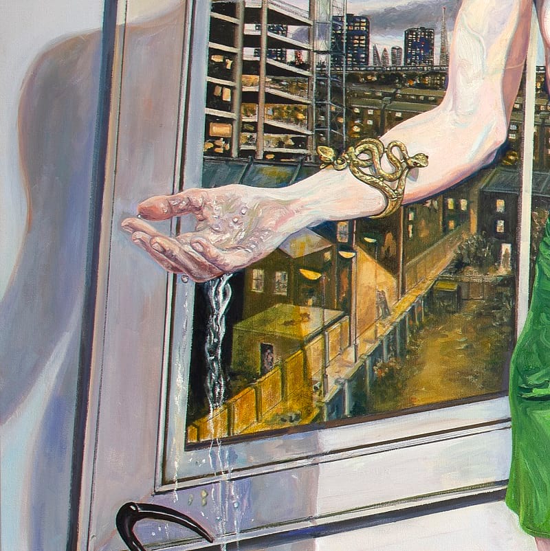 Your artist statement mentions that your portrait work ‘asks questions about the female gaze and painting’s relationship to authenticity and illusion’. Can you expand a little on what you mean by that (perhaps with an example of a painting)?