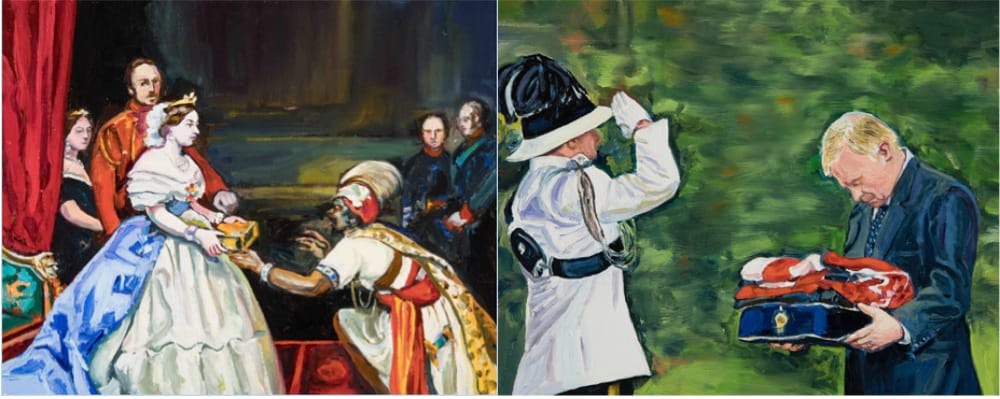 In other series like the “I used to perspire freely…” it is the use and juxtoposition of images from newsreels, newspapers, film, TV, old mistress/master paintings, text. Here sometimes it is hard to seperate these images ….are they from news or scenes cut from a movie? They are about various forms of control: State, Patriarchial, Coercive, Colonial. In these, it is hard to distinguish the ‘Truth’ in all this bombardment of Imagery. I am (as most of us are) only witness to the image not to the event. This is my “relationship to authenticity and illusion” in this instance.