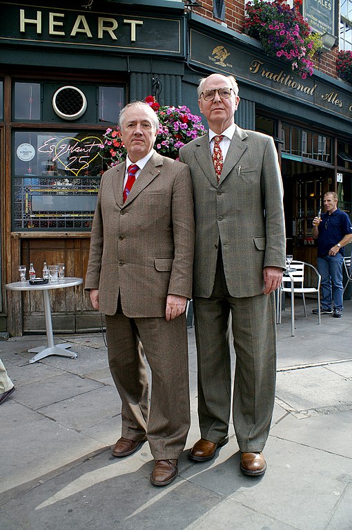 An odd couple in every conceivable sense, the Italian Gilbert Prousch (born 17 September 1943) and Devonian George Passmore (born 8 January 1942) have been shocking the world from their Spitalfields lair since the 1960s. A sort of permanent, living artwork in themselves, the pair’s postcard (or postcards?) might be eminently spot-able…