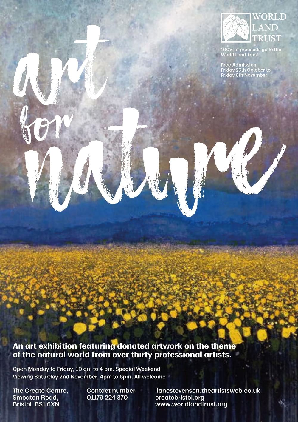 For two weeks from Friday 25 October the Create Centre in Bristol will host an exhibition of animal and nature-themed art – with 100% of the profits going to support conservation charity World Land Trust.