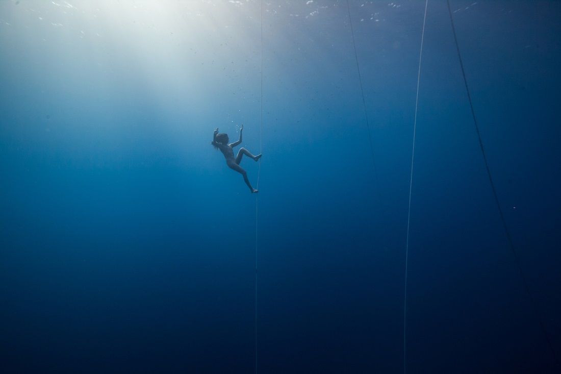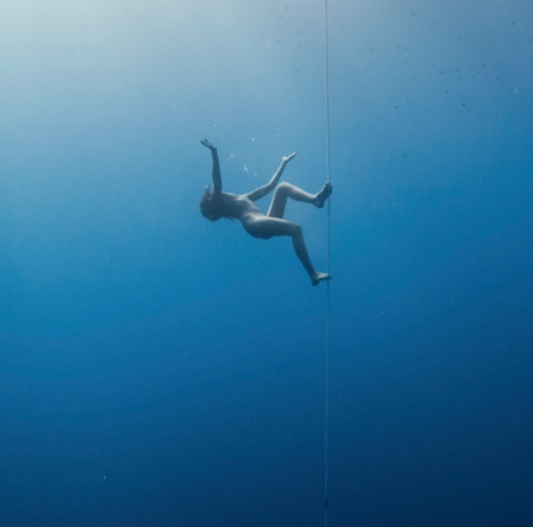 New solo exhibition of director-producer Martina Amati’s immersive video installation. Under is an eleven-minute installation comprised of two separate looped video projections, with each film named after a quantitate means of measuring free-diving ability: Distance and Depth. Underwater cinematographer Daan Verhoeven captured Amati’s subaquatic performance, shooting every scene on a single, non-assisted breath of air.