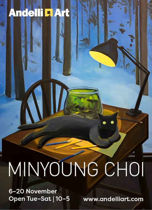 Minyoung Choi is an artist who focuses on painting. Her work shows a mind which observes its surroundings. It is the quiet voice which has mixed and varied feelings about what it sees around it, almost like a nostalgic or innocent observer. The combination of ordinary objects in her paintings – i.e. a laptop, electronic gadgets, ornaments, stationery and so on – she frequently uses, induces a meditative state to the observer. It becomes clear that Choi is evoking elements of her previous works and includes them more subtly in these new daily scenes. This makes for a much more surreal experience as the fantastic is not a dominant presence but more of a subdued feeling.