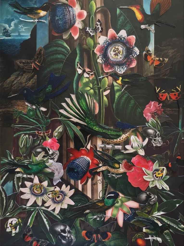 I trained and worked as a theatre and television production manager for fifteen years. After a break to bring up my three children, I decided to attend The London College of Fashion to do a BTEC HNC in Creative Embroidery which then led me on to painting and collage.