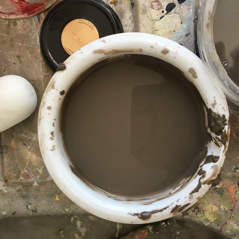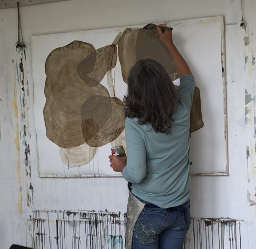 “My paint-making experiments have begun to branch out into creating paints from mud-stones collected on Berrow beach. Working with mud paints is an extraordinary experience. They do not behave in the same way as any other paints I have ever used. It is as though I am having a conversation with the earth, the world, my ancestors, every human who has lived on this planet, whilst I make each mark.”