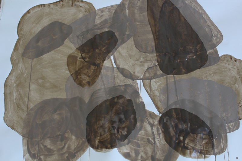 “My paint-making experiments have begun to branch out into creating paints from mud-stones collected on Berrow beach. Working with mud paints is an extraordinary experience. They do not behave in the same way as any other paints I have ever used. It is as though I am having a conversation with the earth, the world, my ancestors, every human who has lived on this planet, whilst I make each mark.”