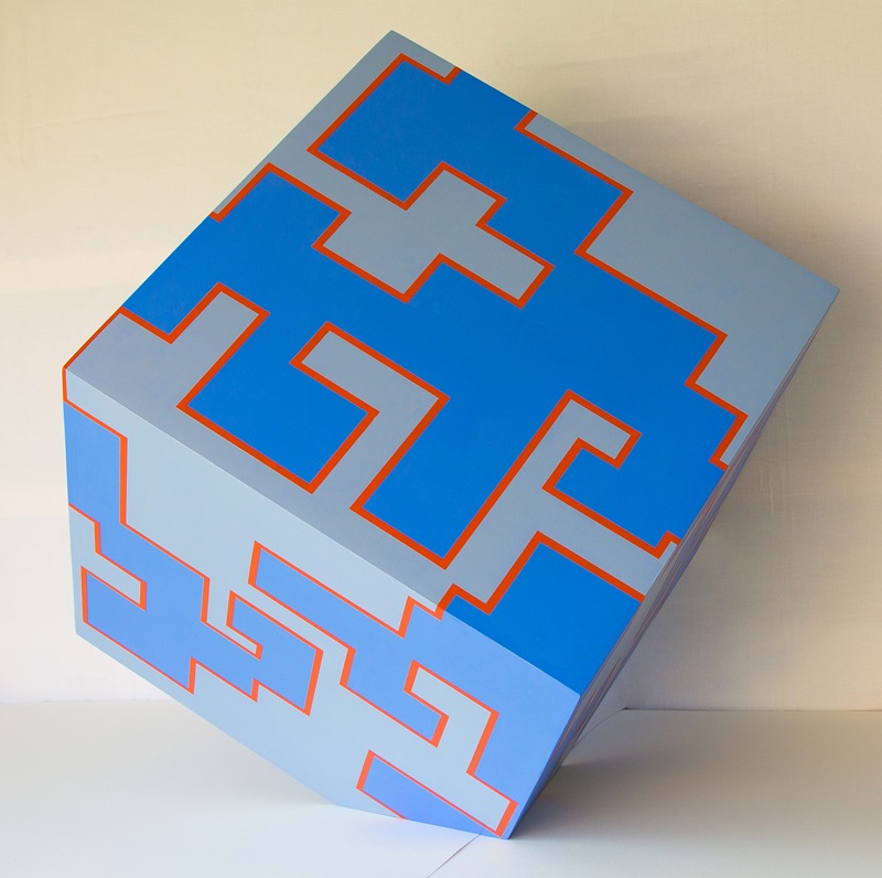 Cuboid 3 (Wood and acrylic paint. 50cm on flattened axis. £900 Buy here)