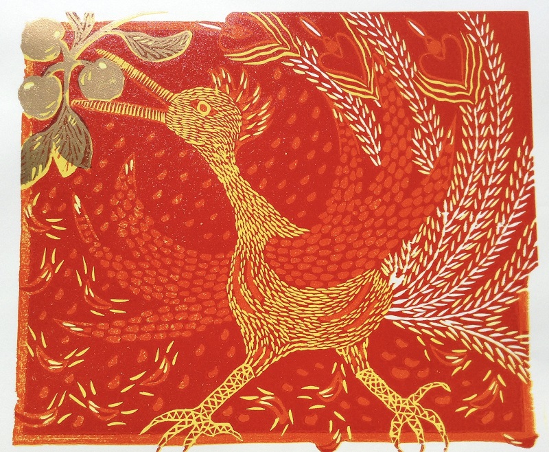 Firebird – Golden Apple (Woodcut relief print 1/8. 35cm x 30cm.