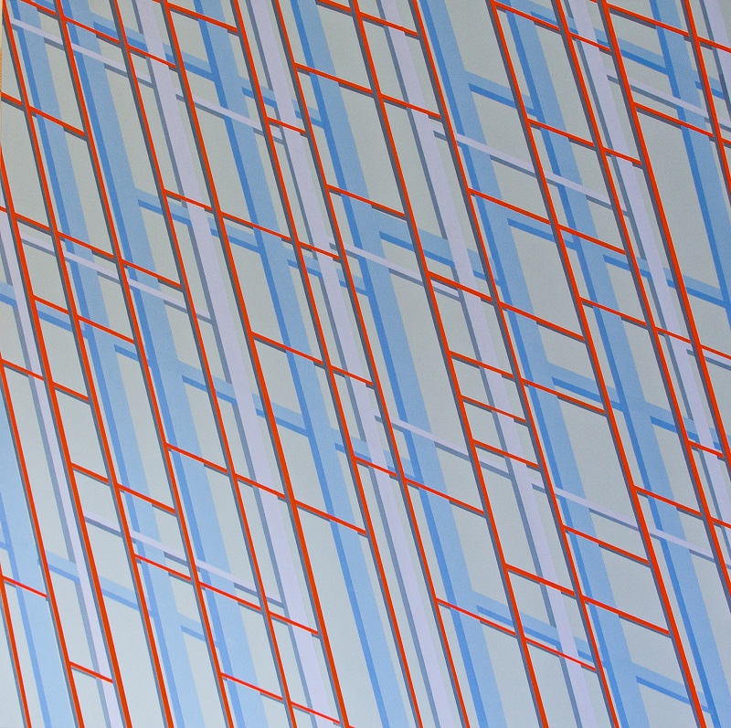 “The use of acrylic paint with its ability to dry so fast has enabled the paintings to be created more by intuition than any mathematical calculation; fine layers of paint are applied, removed and reordered, so that the work grows organically. In this way, the use of colour and how it reacts is a continuous journey which is full of surprises.”