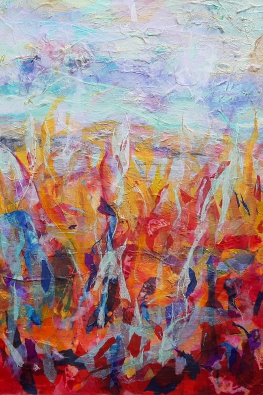 Shân has been experimenting with art and craft, and particularly painting, since an early age. Shân began painting seriously when she moved to South Devon, fulfilling a lifelong dream to live near the sea. “Now I find the beauty of my surroundings helps to inspire a wide variety of work, and I am always learning and experimenting with new ideas, processes and media. My main subject matter is landscape, which I increasingly take towards abstraction. Collage plays an important role in some of my painting. I use a variety of mixed media, usually starting with acrylics and adding paper, inks, crayons and pastels. Texture and colour, and sometimes found items, are equally important in creating atmosphere, mood and emotion.”