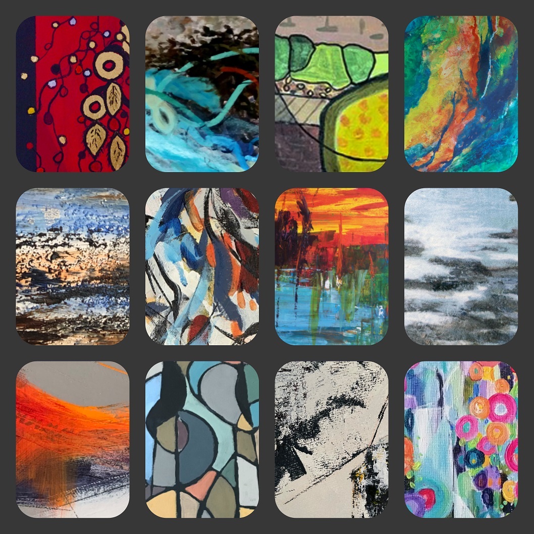 Isolated yet together, they met weekly on zoom. They formed a strong connection, shared ideas and thoughts which encouraged their creativity resulting in a wide range of styles and genres. Participating artists: Jane Boot, Di Ward, Jo Hearn, Jan Denton, Kate Howard, Lyn Harradine, Liza Donoghue, Maggie Pearson, Mina Malpass, Stella Berkeley, Susie Harvey, Laurel Smart.