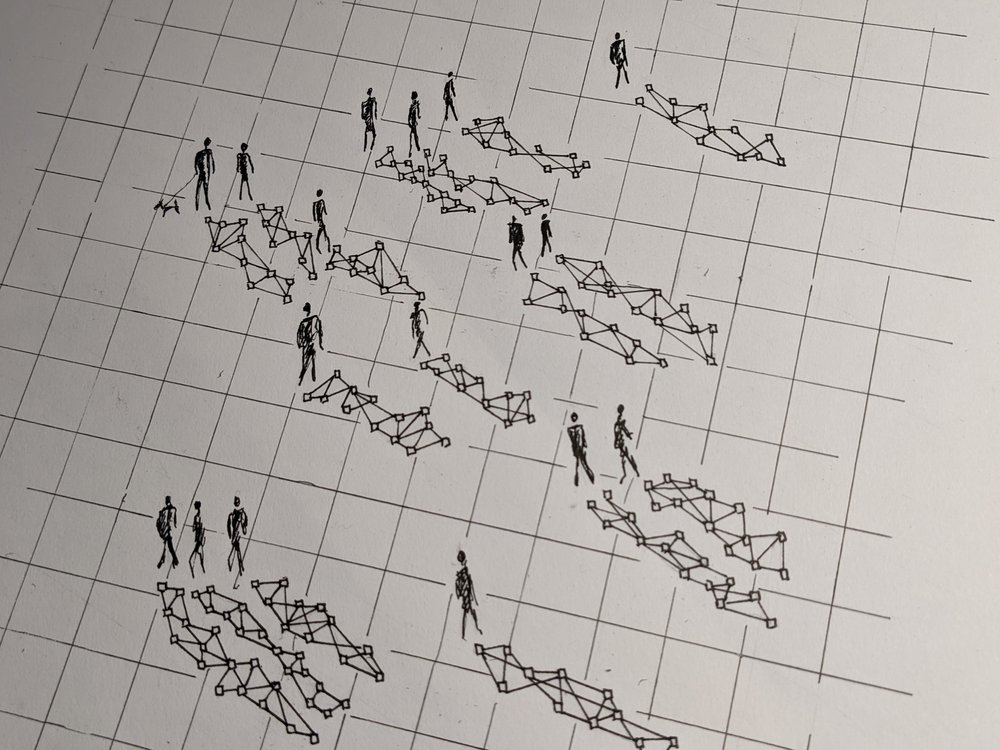 AI Riot is part of an exploration of images relating to AI. I have a good understanding of this technology and I continually watch the ways in which it emerges in our lives. The straight lines are based on neural network diagrams, the silhouettes are people who may be affected, connected, catalogued or watched by systems that use AI.
