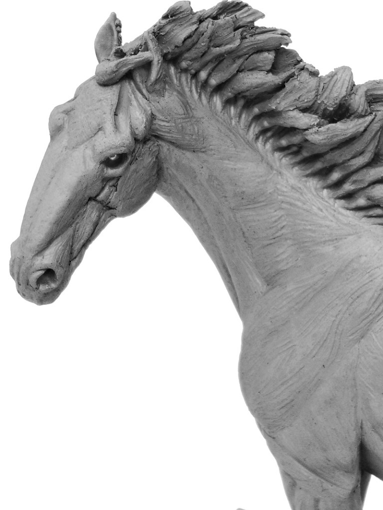Sculpture is often viewed as cutting inwards, like surgery. As Michelangelo said, “Every block of stone has a sculpture inside it” but, using the Sinclair Method, I work outward building up clay stroke by stroke. I build outward to the particular measurements of the animal or human I’m sculpting and I’m acutely aware of anatomy as I go. That accurate sketch and those measurements are the basis of realism. No horse I sculpt, no matter how beautiful, will ever look quite right if I forget to give it a scapular or put one in the wrong place.