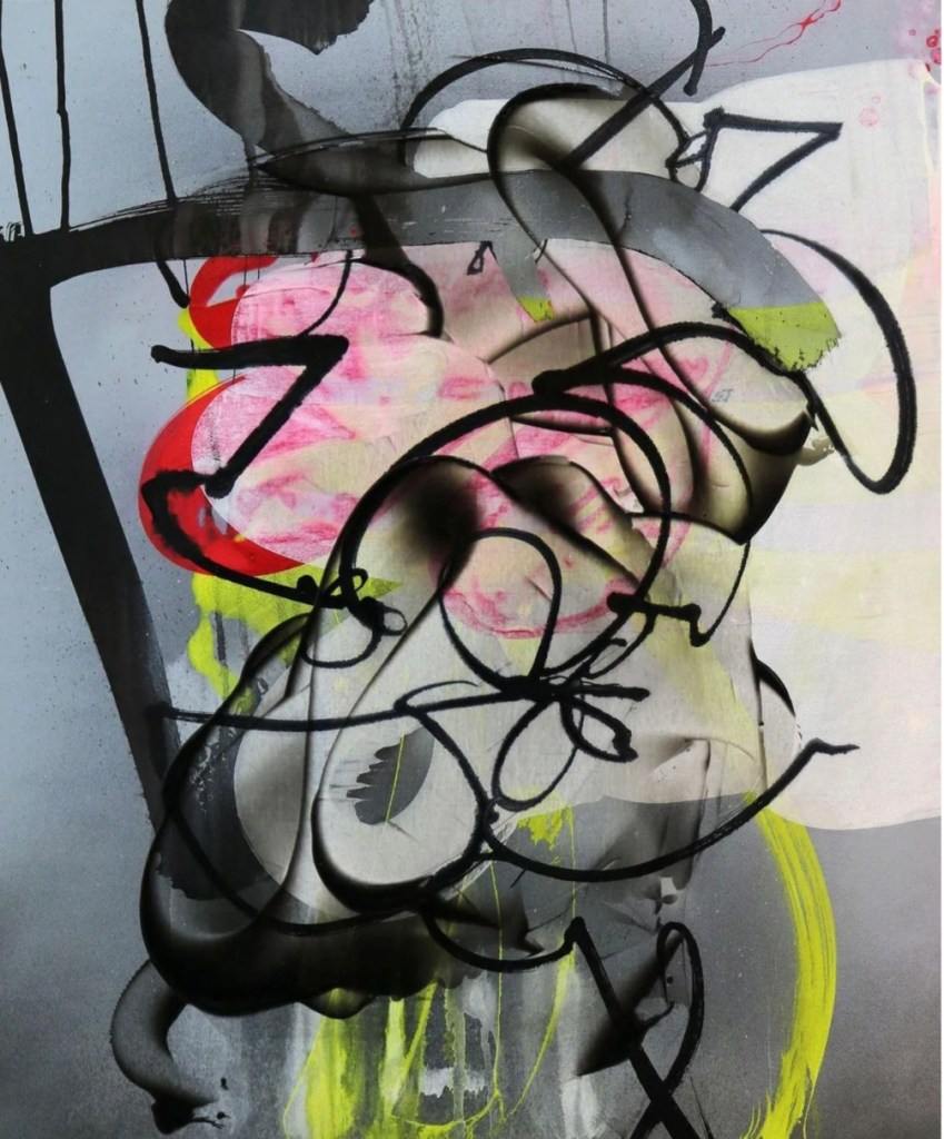 “Much of my work can be traced to a fascination with urban graffiti and comic books, visually arresting images that have burned deep into my sense of aesthetic, half remembered and subsequently fused with other stimulus from the visual soup of our time. I’m interested in making paintings filled with an energy that flows. My own uncharted dialogue between the needs of the subconscious and conscious mind, where the outcome is not fully known where painterly gestural marks combine with different materials chosen for their inherent graphic qualities until some kind of self-determined equilibrium occurs.”