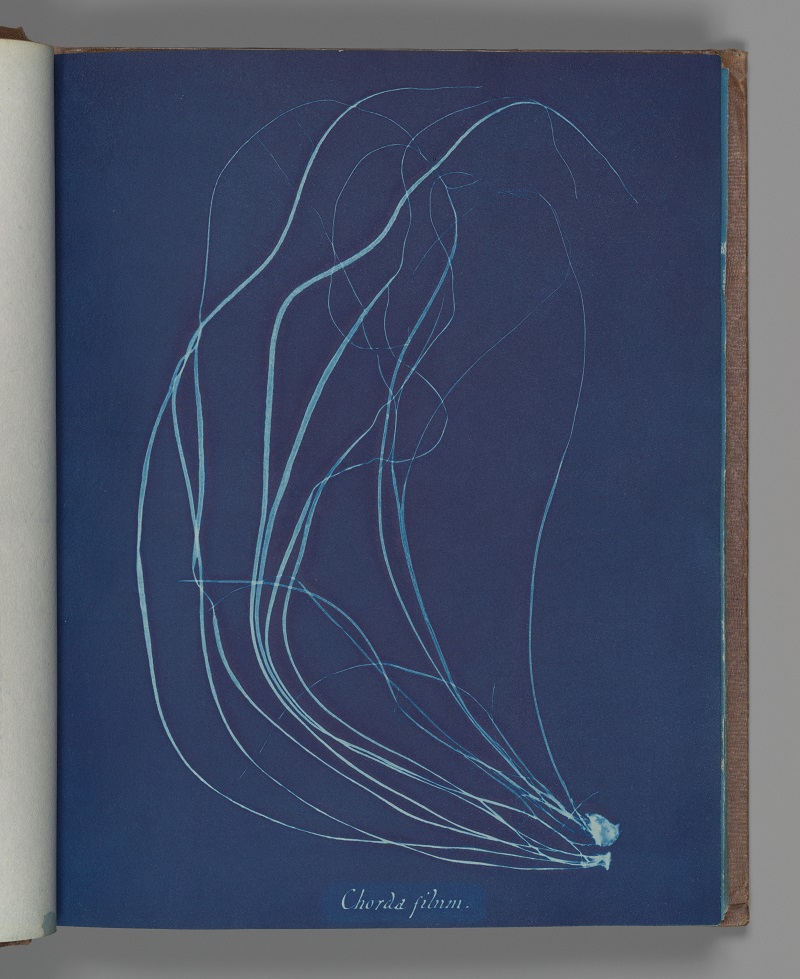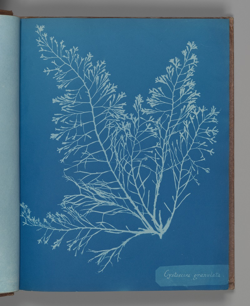 The first volume of her series on British algae was published in 1843, a year after the cyanotype’s creation. Although women were officially excluded from science and education, botany and scientific illustration were considered appropriate pastimes for well-to-do women like Atkins. Her father, the scientist John George Children, influenced Anna’s foray into these subjects, and she supplied the illustrations for his translation of Lamarck’s Genera of Shells, in 1823.