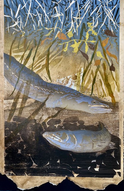 A series of 12 limited editioned relief prints, the artist raises awareness of the international decline of eels by telling their dramatic, unbelievable saga which unfolds annually in Somerset.