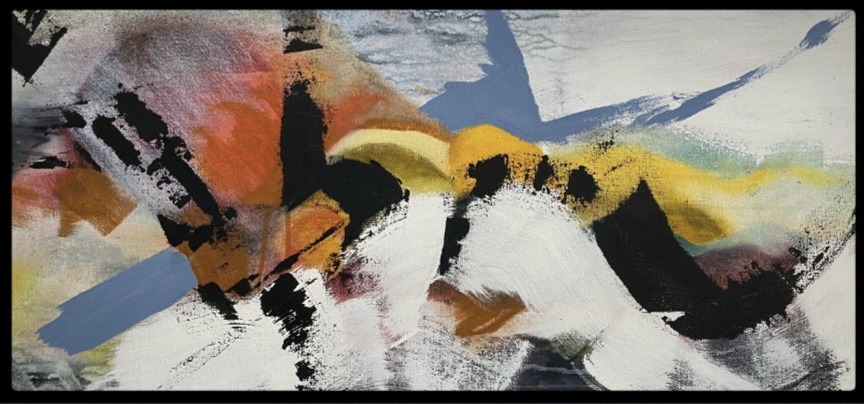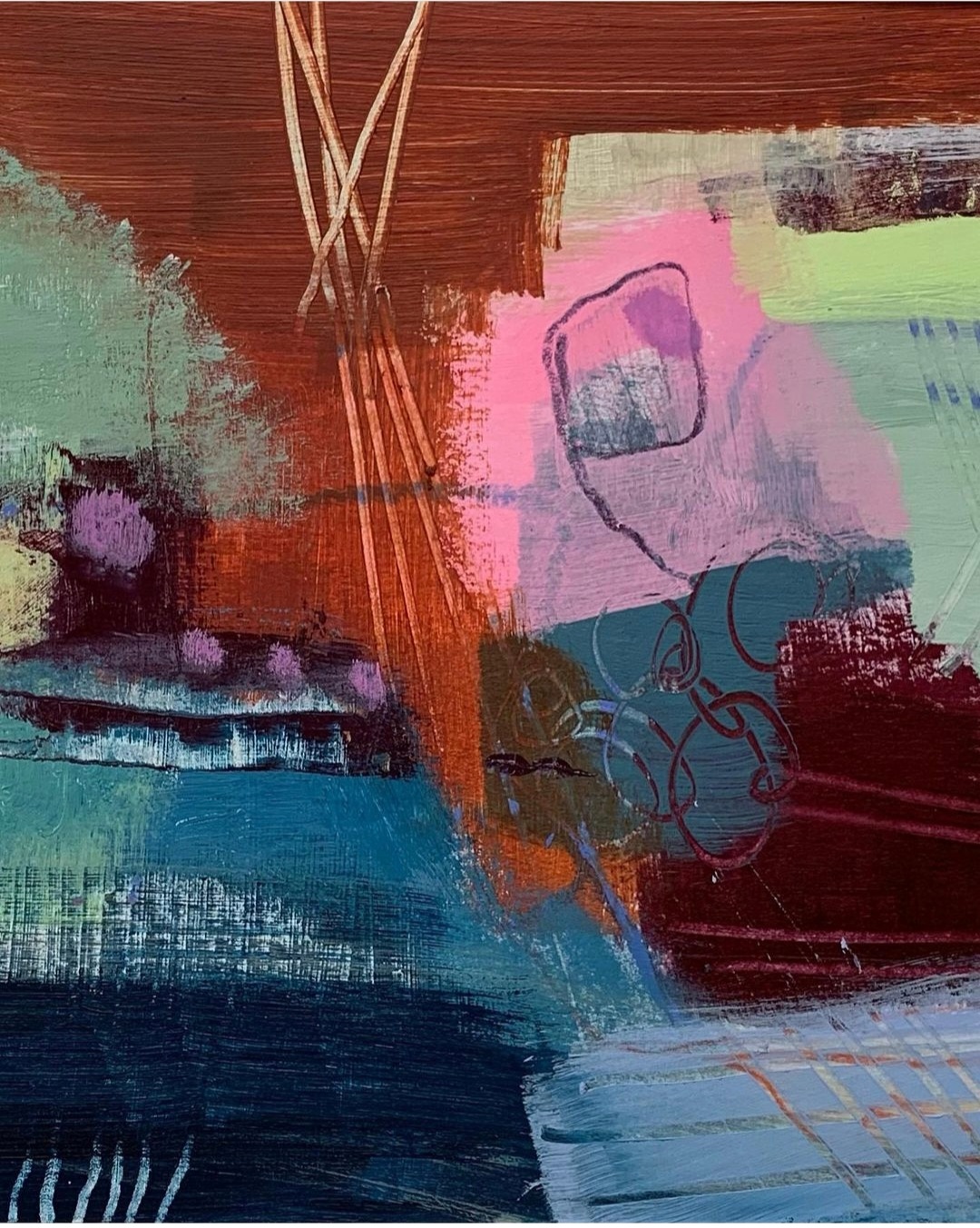 It’s always a relief to experience working completely intuitively, sidestepping my rational mind. This happens when I make abstract paintings. I must work fast with the paints once they are mixed, and the canvas is in front of me. Rapid decisions about colours and shapes work best before I start thinking too much – then something unexpected can emerge…”