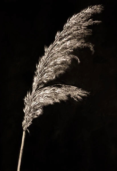I love to give my attention to the commonplace and overlooked things around me and, living near the North Somerset levels, I felt the Common Reed was a subject I see daily but had never really looked at. I wanted to explore not just its proverbial grace, embodied in the curve of its stem, but also the wild profusion of its seeds in their cotton wool down, ready to take flight.
