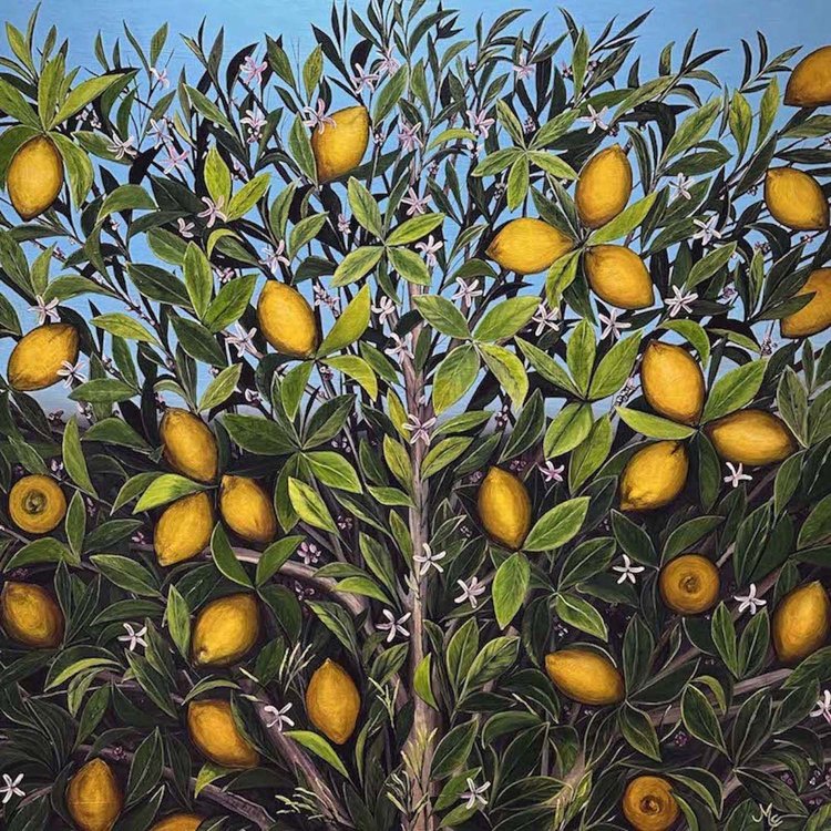 Can you tell us a little something about Lemon still life in situ III (76x76cm Acrylic on wooden panel, gold leaf edge)?