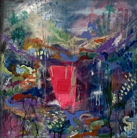 Ruth has a primal connection to wilderness. She explores the landscape with her body: rock-climbing, mountaineering, cycling, feeling the earth rumble through her. This bodily experience of landscape is reflected in the kinetic way Ruth creates her paintings. Inner and outer landscapes collide, carving a way through dark and often confusing times, seeking the light that offers the beacon of hope, a celebration of difference. Sometimes working on enormous bedsheets, she allows herself to be entirely instinctive with paint. At the beginning, the marks are frenzied, the choices of colour entirely innate.