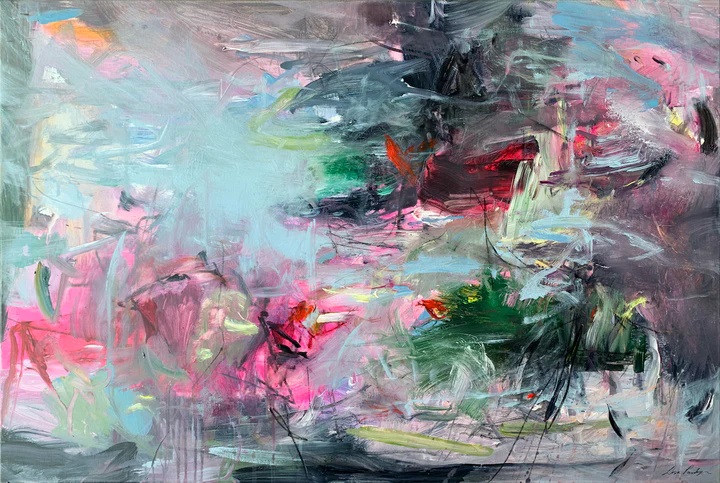 Lisa Parkyn is a contemporary abstract artist originally from arid Botswana, in contrast she now works from her home studio in East Devon surrounded by lush countryside and nearby Jurassic coastline. She has always had a deep affinity with nature which serves as a wellspring of inspiration throughout the seasons. Her work includes references of landscape, flowers and figures and is linked to intuitive drawing, mark-making, layering as well as expressive and gestural brushstrokes. She utilises her sensory and emotional response to subject matter. She primarily creates with acrylics, pastels, charcoal, and collage on canvas, paper, or wood. Her latest work is looser, vibrant and more expressive, fuelled by Lisa’s passion for exploration and play.