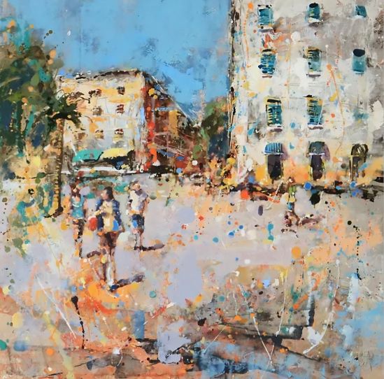 Andrew Hood’s new collection of paintings capture the dynamic interplay between urban landscapes and coastal scenes. The exhibition reflects his unique approach to contemporary painting where the vibrancy of city life meets the tranquillity of the coast.