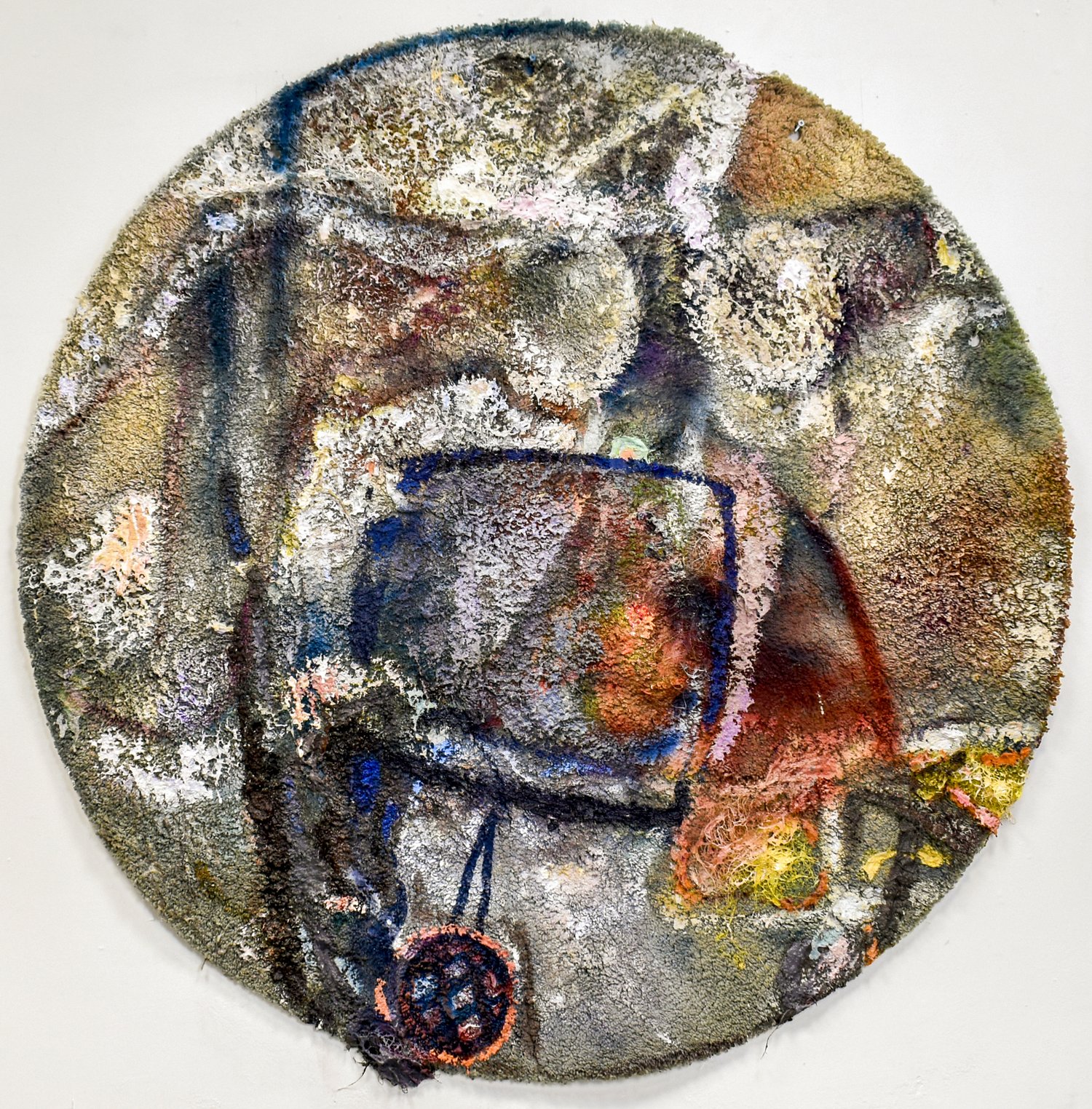 Karo Plovers Ptaszkowska’s solo show features a selection of paintings and textiles from her new series, as well as found objects collected during her short stay in Stroud. Her literally multi-layered works are infused with fragmented bodies and biomorphic forms that shift into architectural motifs, patterns, and sources of light. These elements serve as means of interconnectivity between humans, electric appliances, forms, space, and time.