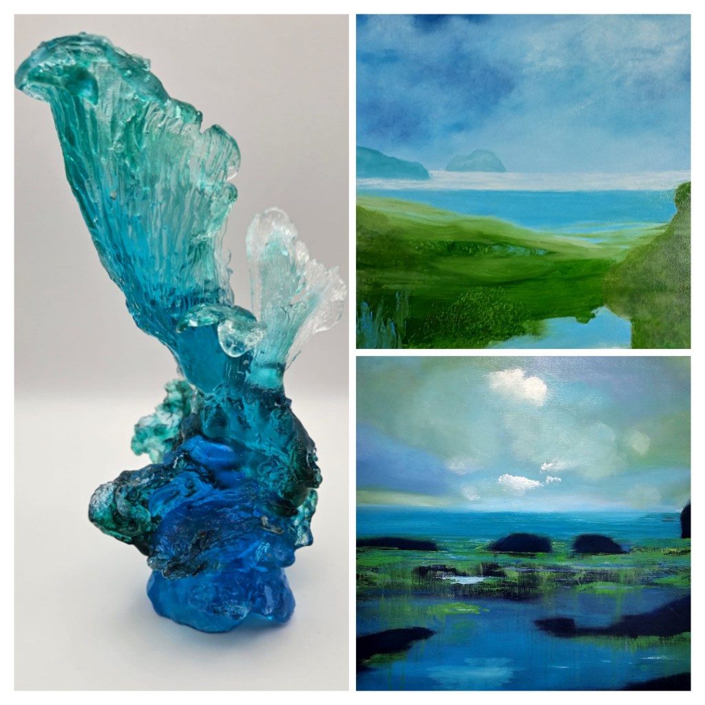 ‘Standing at the edge of the sea, I am captivated by the distant horizon, vastness, space, endlessness and the possibility of setting off into the unknown. I paint atmospheric seascapes which aim to impart peace and serenity, calming the anxieties and complications of the times we live in. My seascape work is for me a meditative form of painting in contrast to my landscape work which is often around environmental concerns.’ Sylvia Wadsley