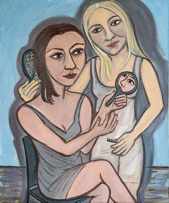 It’s always my starting point—the female figure. I might start with the nose or an eye, sometimes the shape of the head and shoulder, then describe the figure from there, restating and changing many times until she finds her place in the canvas and the narrative develops.