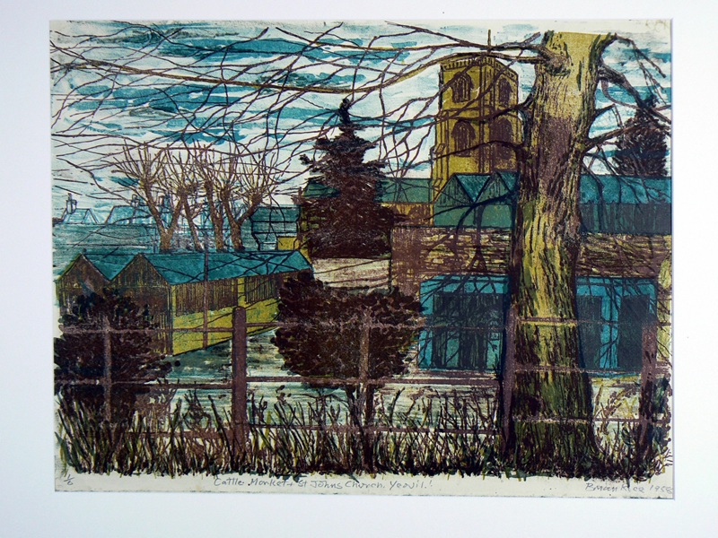 The exhibition presents an extensive collection of over 40 pieces of early works made by Brian in the 1950s, including his first wood engraving ‘Rare Breed’. Art education in the 1950s was rigorous, “The skills I learnt then still inform my work today” says Brian. His art school work includes figurative drawings and landscapes, which may surprise many who are more familiar with his bold colourful abstract paintings. Also in the show is his personal archive of photos, such as The Christmas ball at Yeovil School of Art in 1952. The early figurative and landscape work in the show depicts many local scenes, including several of Yeovil town centre as it then was, along with Montacute House and views from Ham Hill. The exhibition also presents a selection of his later work that reflects his enduring interest in archaeology and ancient landscapes in South West England, and some of the more recent abstract work will be shown to the public for the first time.