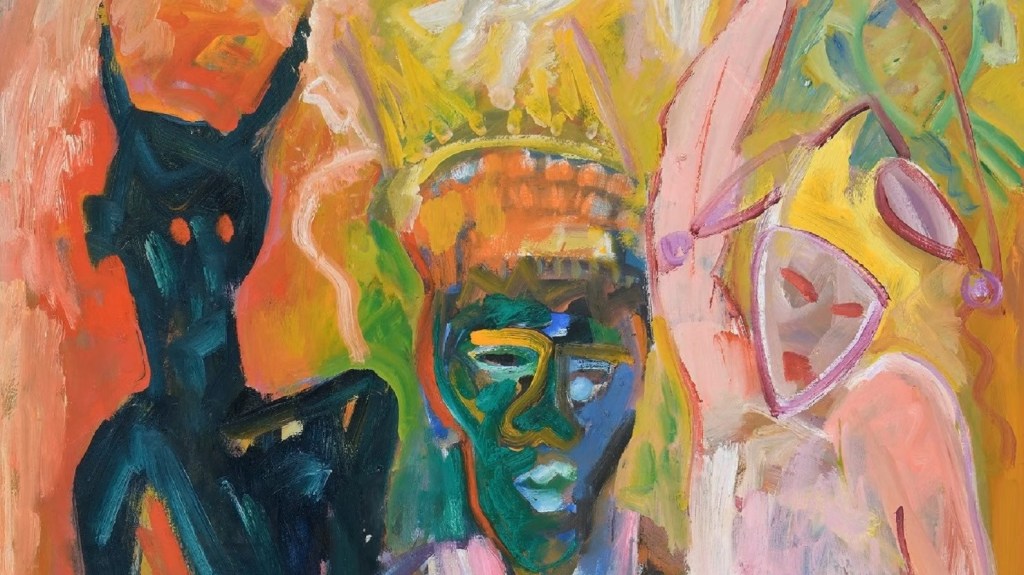 Carnivalesque features a series of Lyons’ dynamic, expressive works and explores the folklore and mythology of Trinidad and Tobago, in particular the large colourful carnival that takes place there just before Ash Wednesday every year. Mysterious figures mingle with symbols and motifs including the mythical ‘jumbie bird’. Vibrant scenes are laced with uncertainty as you are invited to take a journey into Lyons’ world.