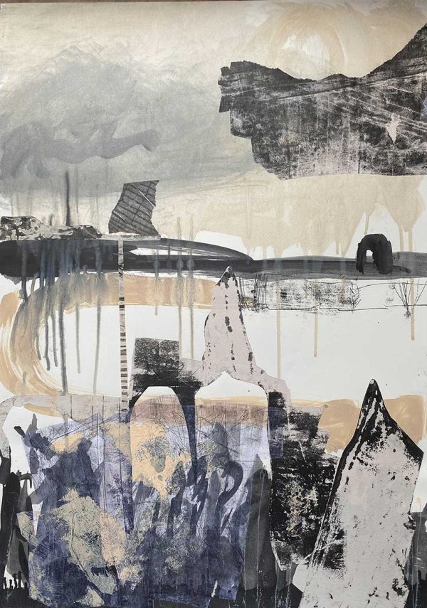 She works mainly in the mediums of monotype, intaglio and relief, occasionally introducing paint, frequently using palimpsest within the complexity of her multi-layered pieces. Inspired by her surroundings, these seemingly disparate urban and natural environments are linked by decades of unique erosion and decay, whether caused by natural or man-made interventions. Foster builds up complex layers, combining multiple print processes: layering up the substrate with dry-point etching, carborundum and collagraph, chine collé and monoprint collage.