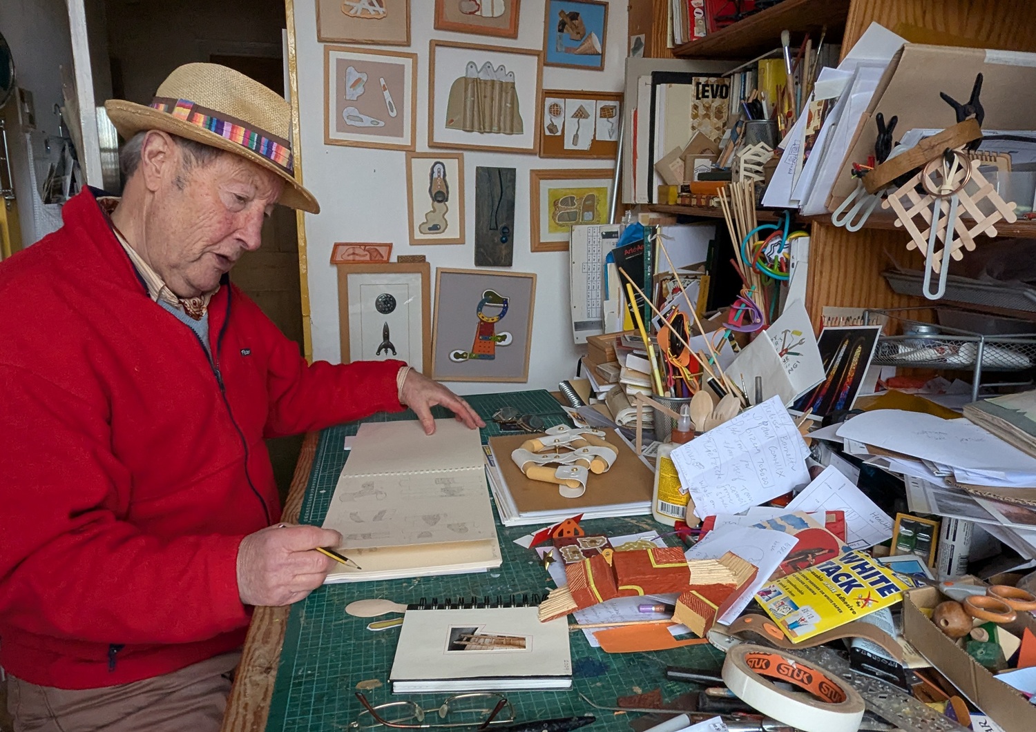 “For a few years I had a studio in Park Street,” he says. “In that time, I didn’t take any machinery with me, not even a drill. I kept a diary for 55 years and I would go into the studio, I would note things in the street that I saw and I would do a drawing bedside. For ten years I worked almost exclusively on brown paper and with some Meccano and laser cut steel.”