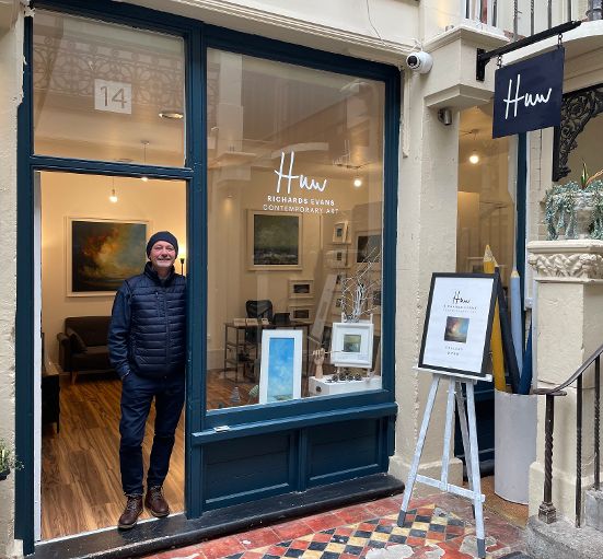 Huw Richards Evans established his gallery in Clifton Arcade in 2023, creating a space to exhibit his own work alongside that of other local artists. It’s a family endeavour — his son Billy curates an annual exhibition for young artists from the South West and helps run the gallery — and the programme changes regularly to give as many artists as possible a chance to be seen.
